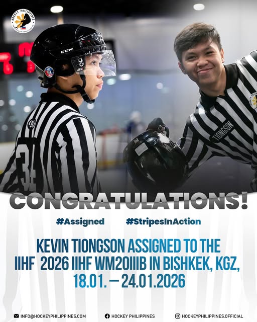 From earning his IIHF officiating license to stepping onto the world stage in Bishkek, Kyrgyzstan, this is a huge milestone for Philippine hockey officiating.